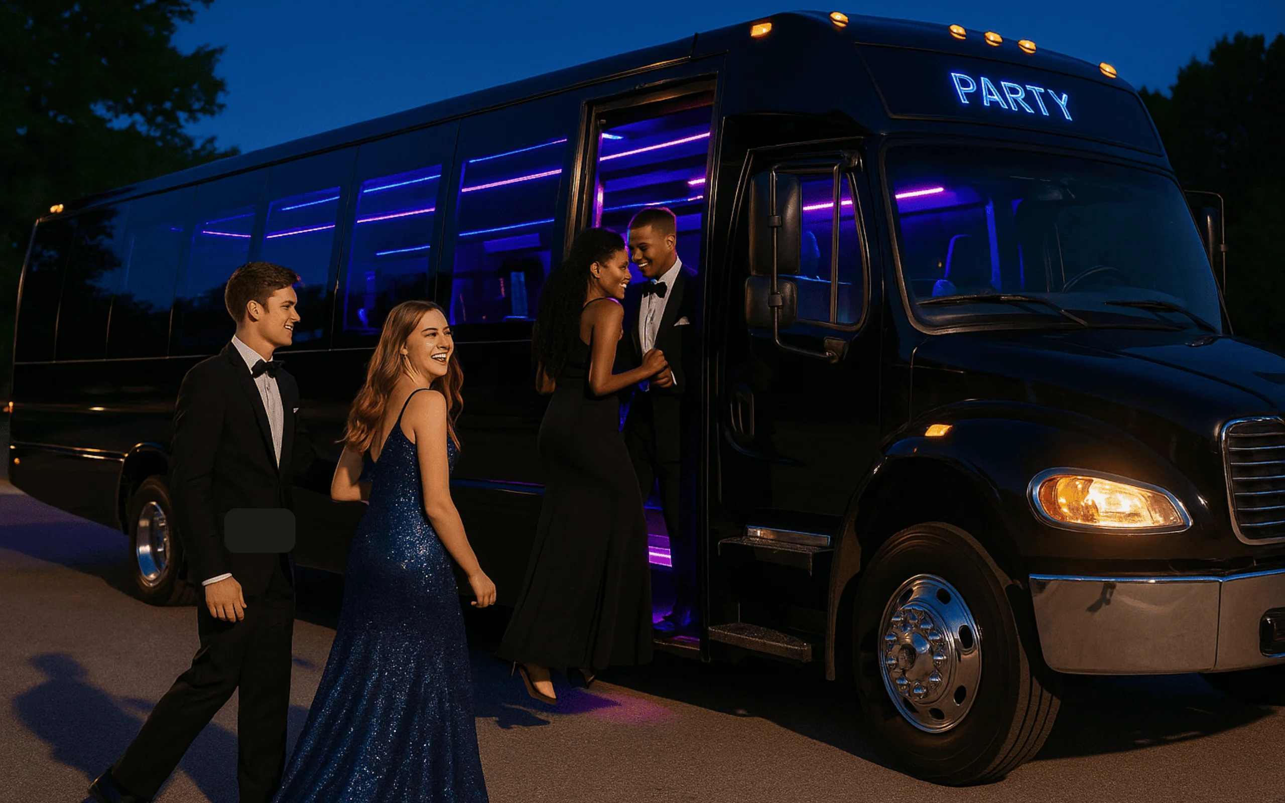 Bring the party on the road! Our fully equipped buses feature lights, music, and space to celebrate any occasion in style.
